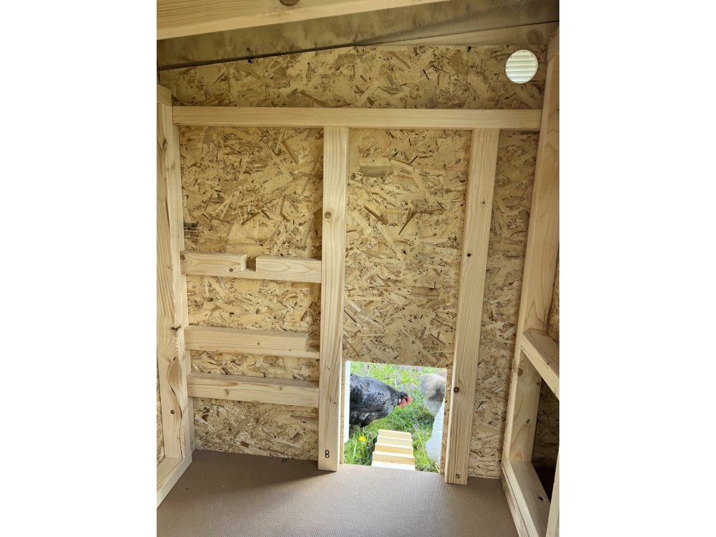 Strop je navíc opatřen izolační vrstvou, která udržuje kurník v letních vedrech chladnější.