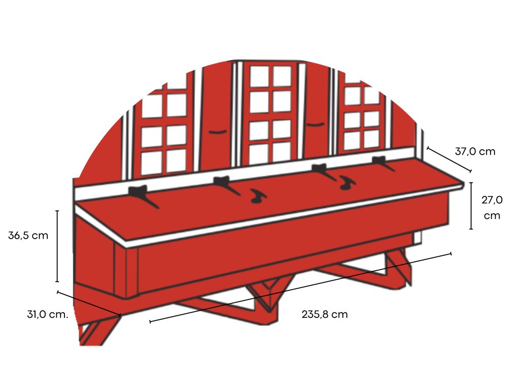 Rozměry sestaveného kurníku: 2,49 m x 1,52 m x 1,84 m (D x Š x V) - vč. hnízdních boxů