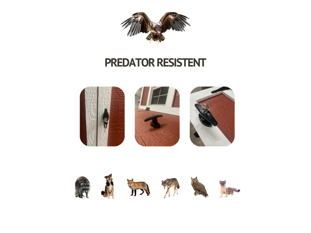 Eine elegante Lösung für moderne wie klassische Gärten – ideal für 5 bis 13 Hühner, denen sie einen sicheren und gemütlichen Raum zum Legen, Ausruhen und Schlafen bietet. Zuverlässiger Schutz vor schlechtem Wetter und ungebetenen Gästen ist selbstverständlich.