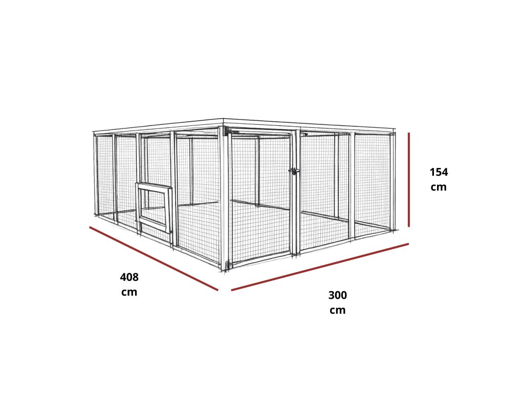 Dimensionen des zusammengebauten Hühnerauslauf: 3 m (L) x 4,08 m (B) x 1,54 m (H)