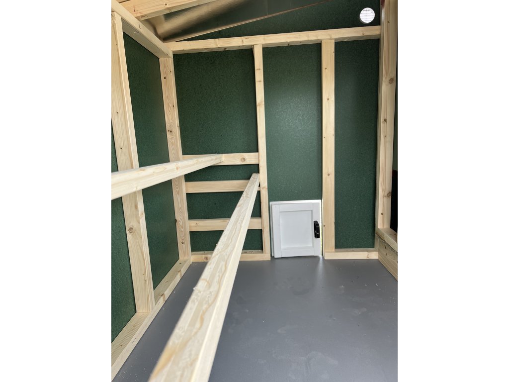In addition, the ceiling has radiant barrier sheathing to keep the coop cooler in the summer heat.