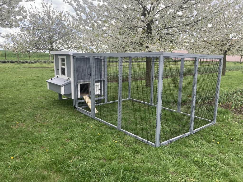 Our Medium EZ Chicken Home Run (recommended for our Medium EZ Chicken Home Coop) offers an outdoor space for chickens with an area of 5.84 m². It consists of a solid wooden frame with metal mesh side panels and protects your flock from predators.